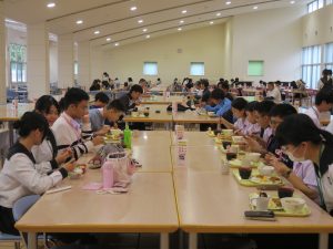 またお昼は皆、食堂にて、英語でコミュニケーションをとりながら楽しくお昼を過ごしていました。