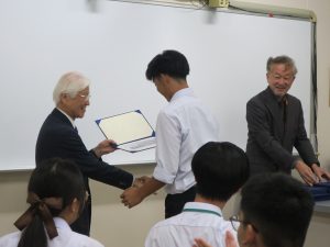 実験から発表まで行うというハードなスケジュールでの研修プログラㇺでしたが、皆さん英語でコミュニケーションをとりながら一生懸命取り組んでいました。最後には池ノ上学長より修了証の認定式があり修了証を受け取った生徒さんたちがとても誇らしく見えました。