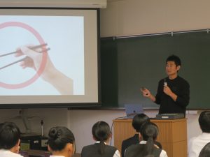 また今回、引率で来学した高校の先生は本学のスポーツ健康福祉学科の卒業生でもあり、「久しぶりに講義室に入って懐かしく感じました」と、教員として頑張っている姿を拝見でき、本学としても大変うれしく思いました。