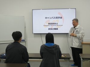 キャンパス見学会はオープンキャンパスのような体験型ではありませんが、少人数の受入れのため、学科の教員と一緒に施設を見学し、直接取得できる資格や学習内容など、教員の話しがじっくり聞ける企画です。第3回目の今回もたくさんの方にご参加いただきました。