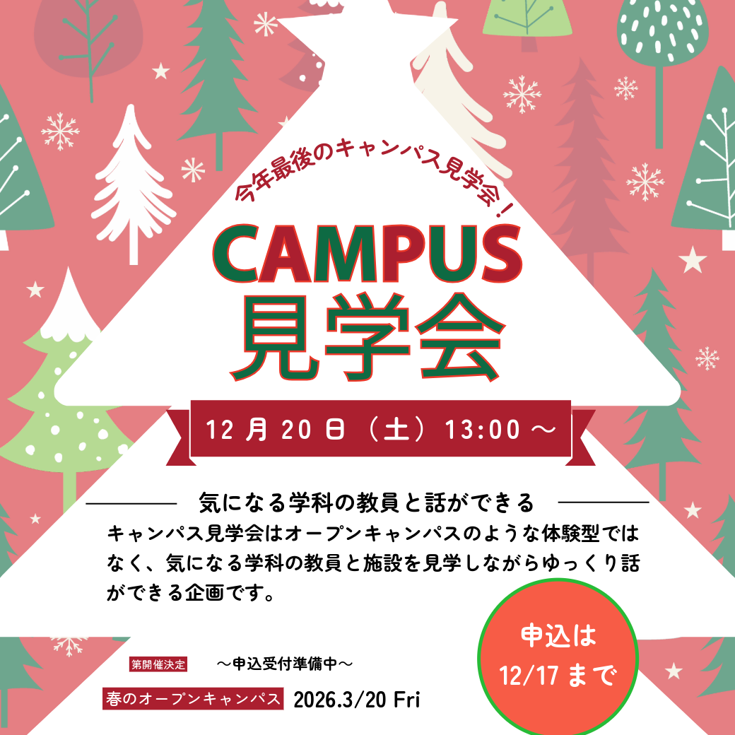 【申込受付12/17迄】12月20日(土)キャンパス見学会