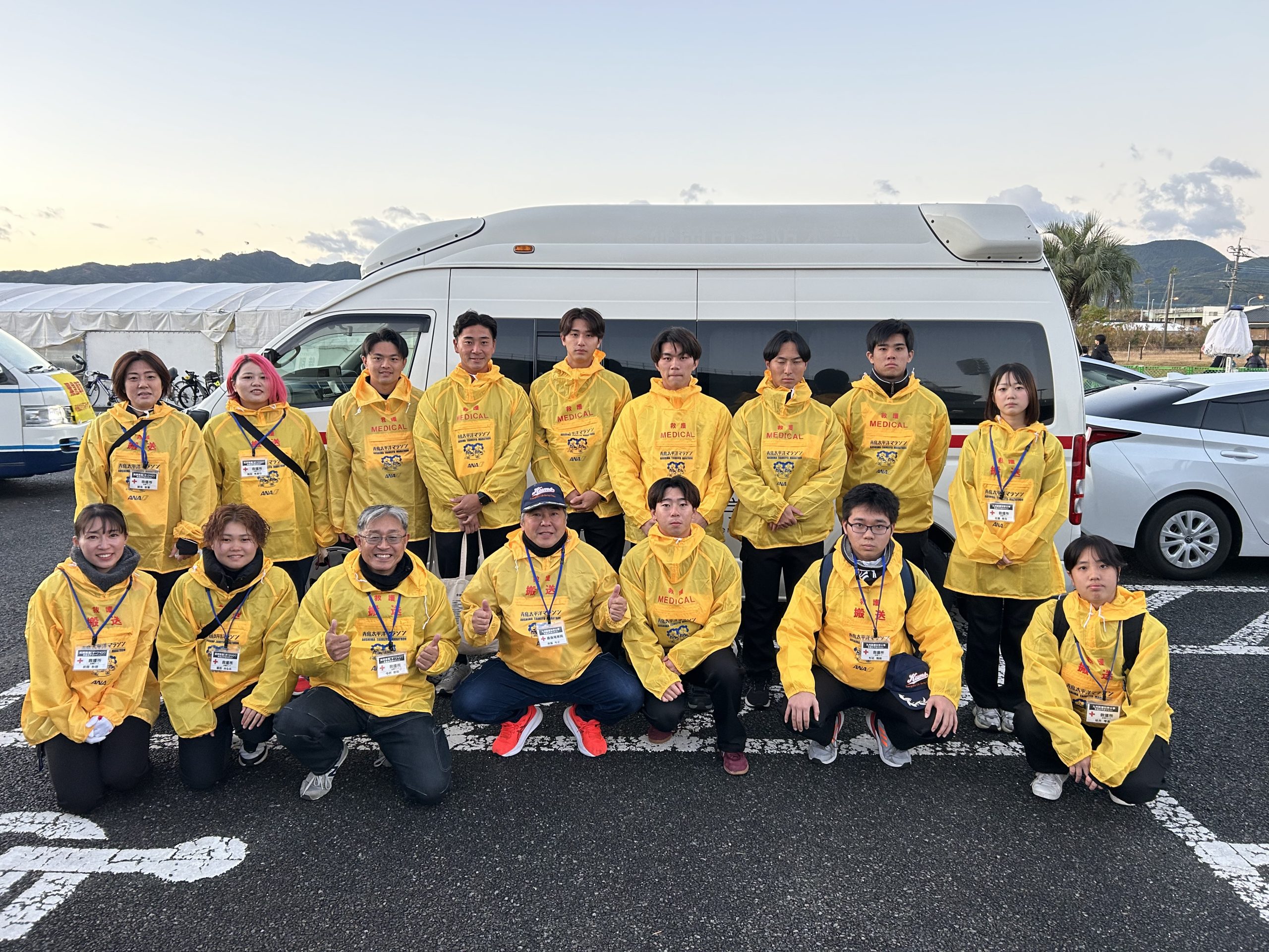 2025年12月14日(日)、宮崎市で開催された「第39回青島太平洋マラソン」に、本学 社会福祉学部 スポーツ健康福祉学科・救急救命コースの学生11名が、救護ボランティアとして初めて参加しました。
