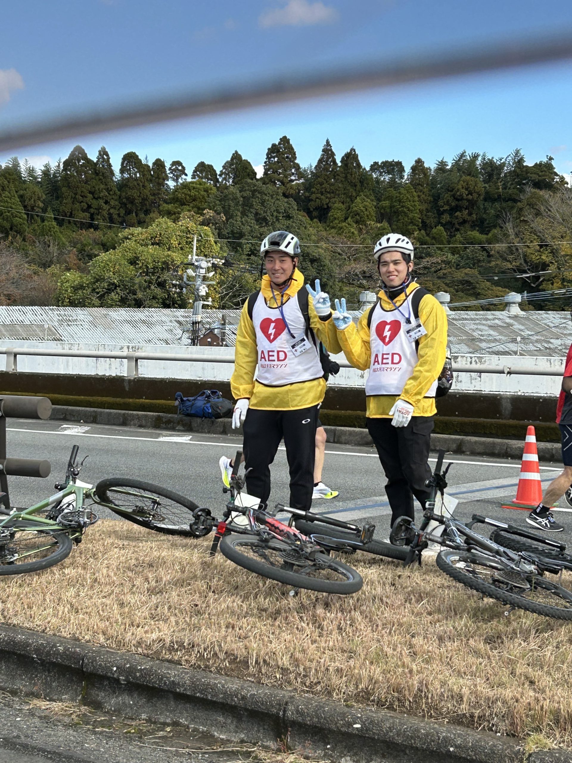 - 機動力活かした「AED隊」 学生たちが自転車でコースを巡回。体調不良者にいち早く駆けつける機動的な待機体制を維持しました。