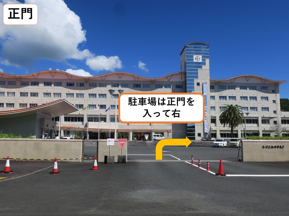 来学にて参加の皆さまの駐車場については、正門を入った右側となります。