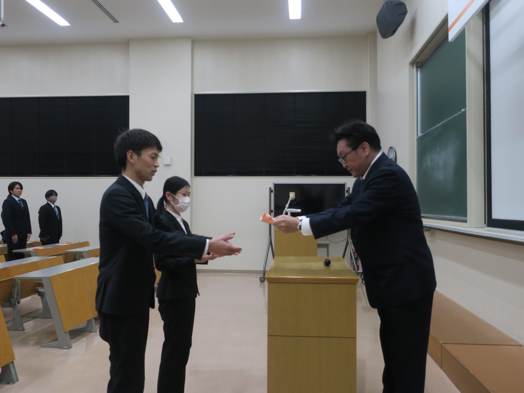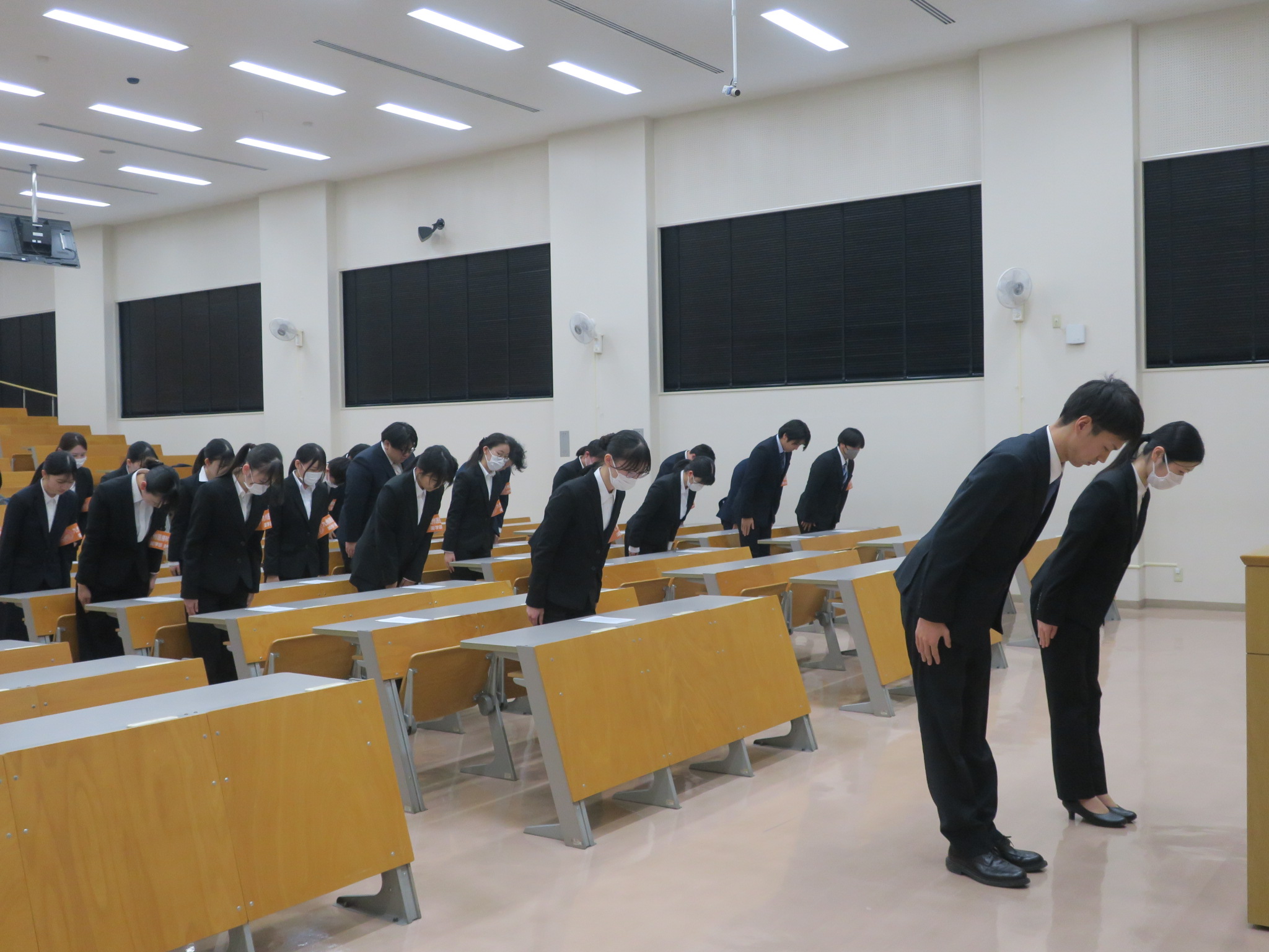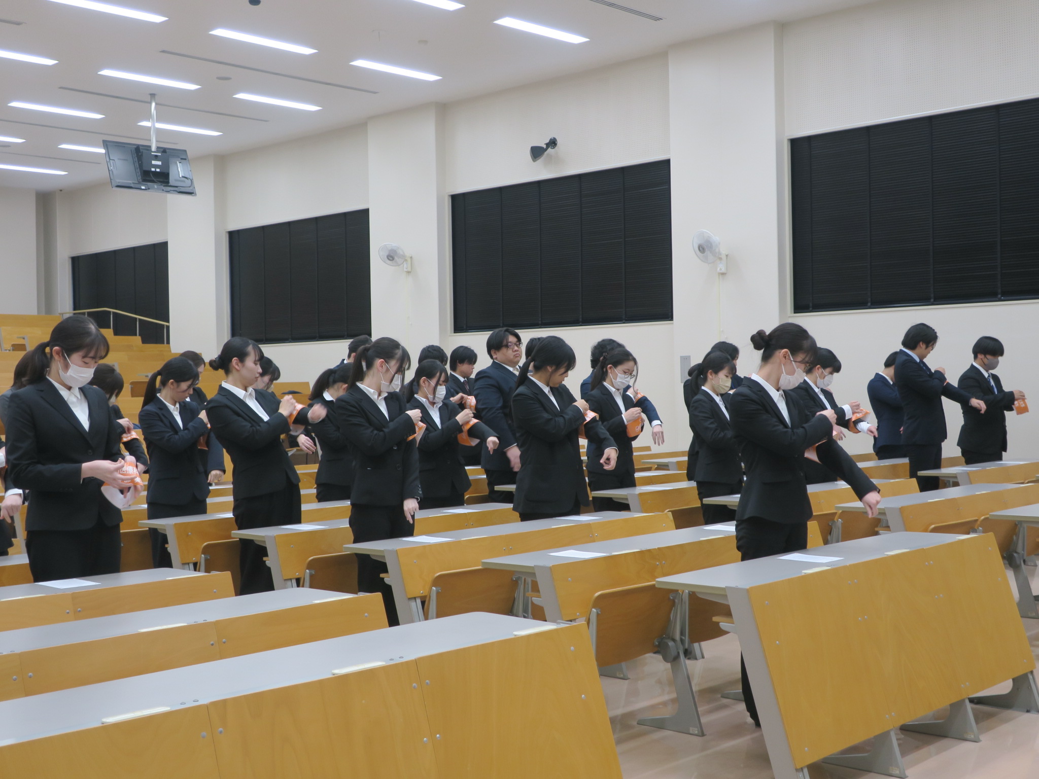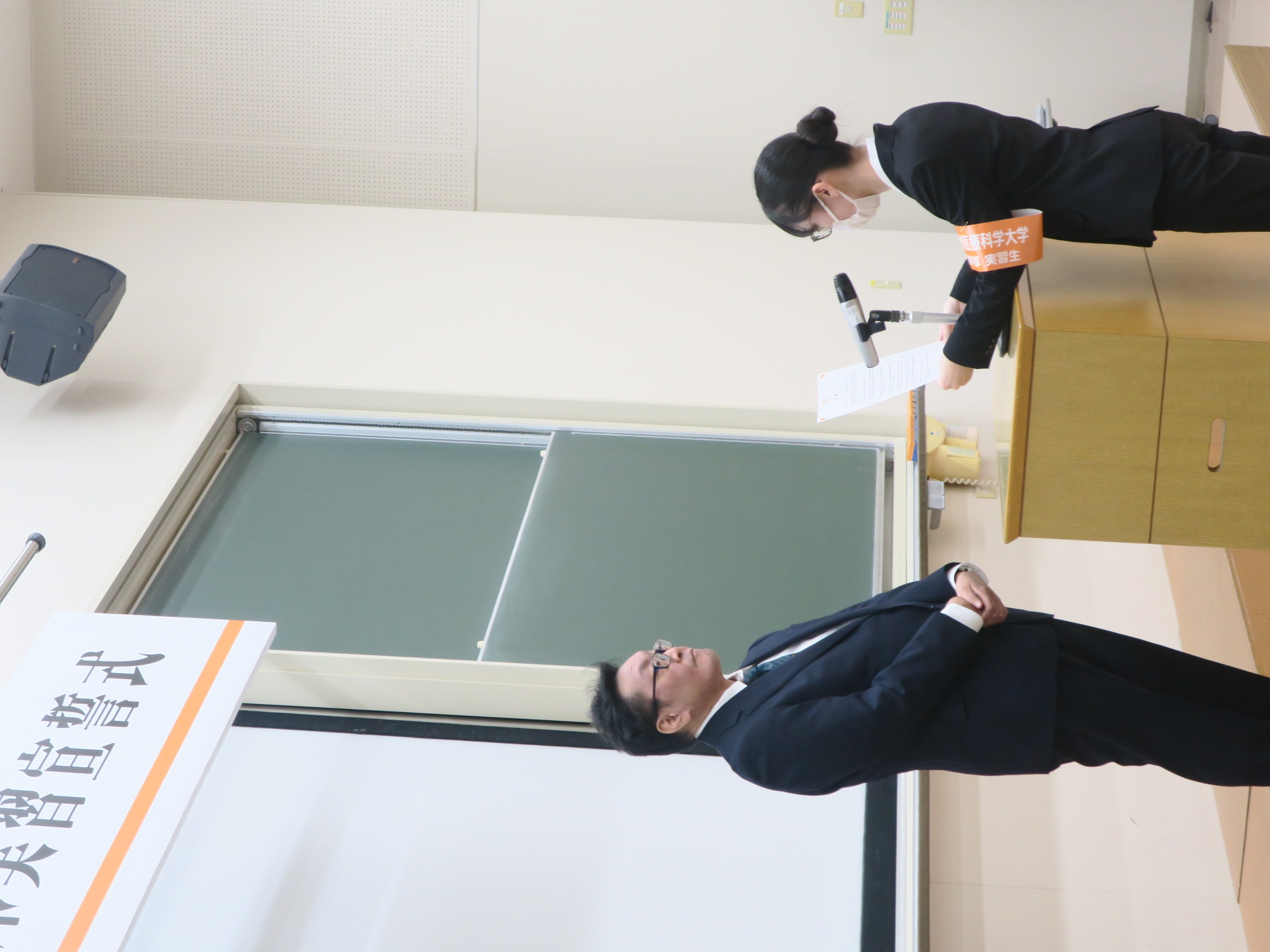 2026年01月29日 お知らせ 薬学臨床実習宣誓式を行いました。 薬学臨床実習宣誓式を行いました。 1月29日(木)15:10~薬学臨床実習宣誓式を行いました。 この式は、4年次から5年次に22週間に渡って実施される実務実習において、各人が本学の名を背負って各医療施設(薬局・病院)で実務実習を一生懸命にやり遂げて参りますという誓いをたてるとともに、一人ひとりに「九州医療科学大学・薬学部・実習生」と書かれた腕章を授与するものです。 2月16日より始まる実務実習に向けて、薬剤師倫理規定を拝読しました。