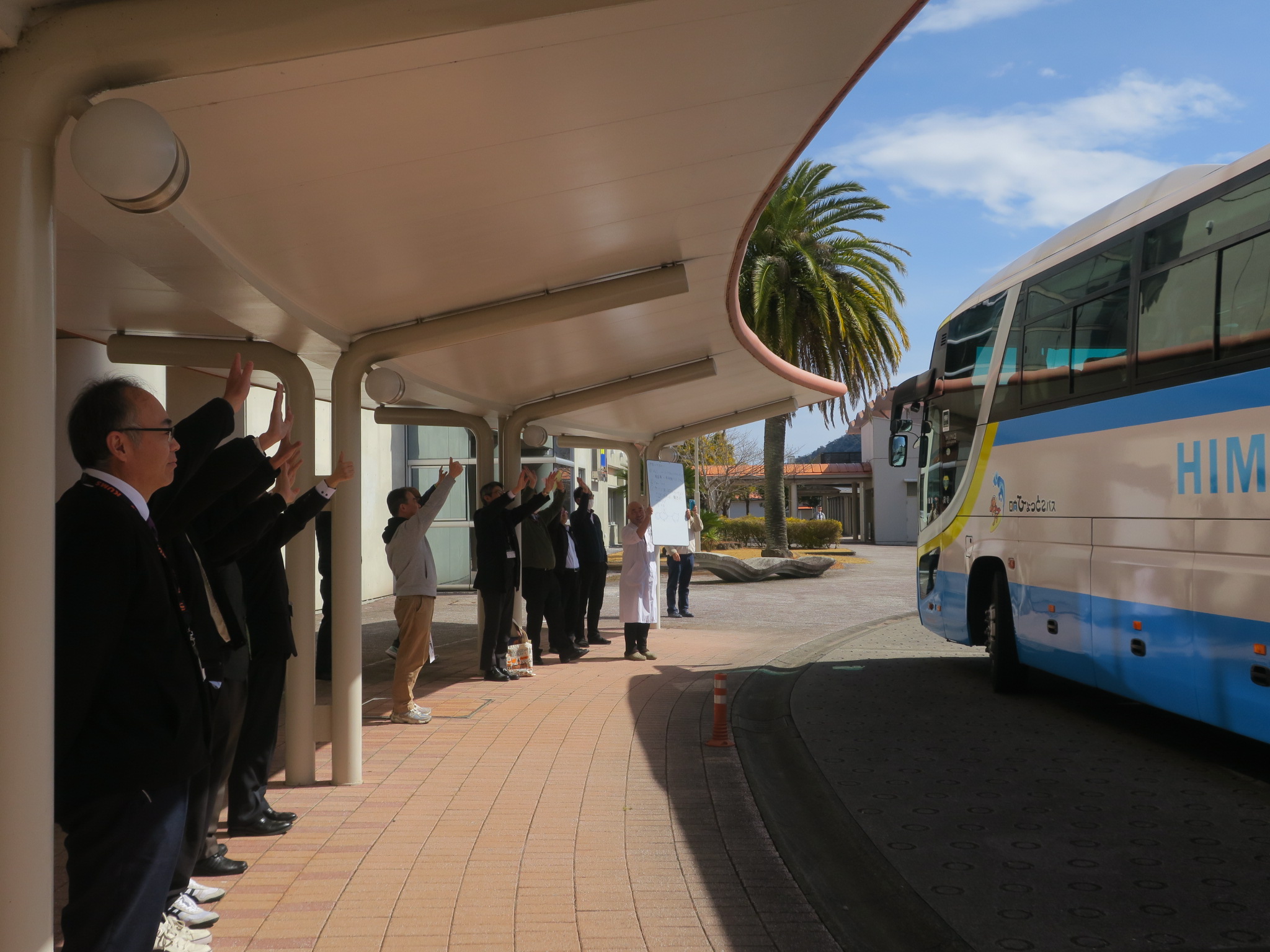 2026年02月20日 お知らせ 薬剤師国家試験へ向け出発 薬剤師国家試験へ向け出発 2月20日(金)薬剤師国家試験受験のため、6年生が福岡に向けて出発しました。 試験を受験する学生たちは緊張の面持ちでしたが、教職員や仲間に温かく見送られ大学を出発しました。 中にはバスを最後まで見送るために走り出す先生もおられ、笑顔になる場面もありました。6年生の皆さんは少し気持ちが和んだのではないでしょうか。 皆さんの今までの成果が実るよう、本学から応援しています。 がんばってください!!