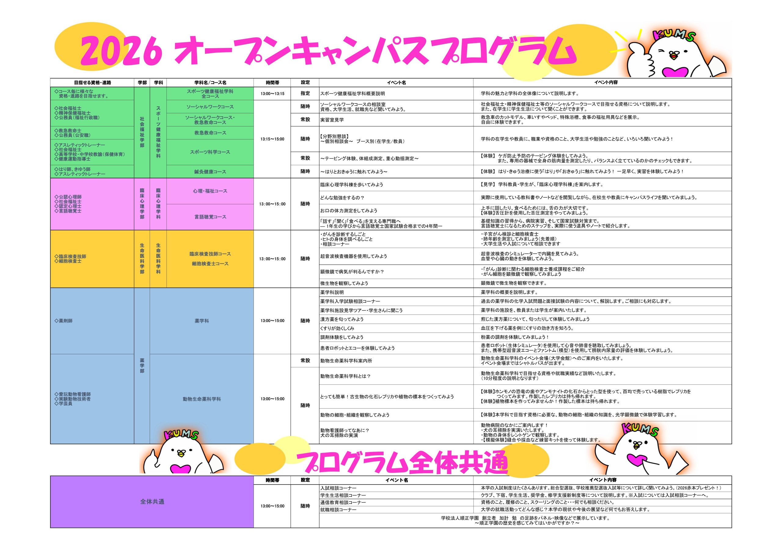 ◆プログラムはこちら⇒2026.3.20 オープンキャンパスプログラム