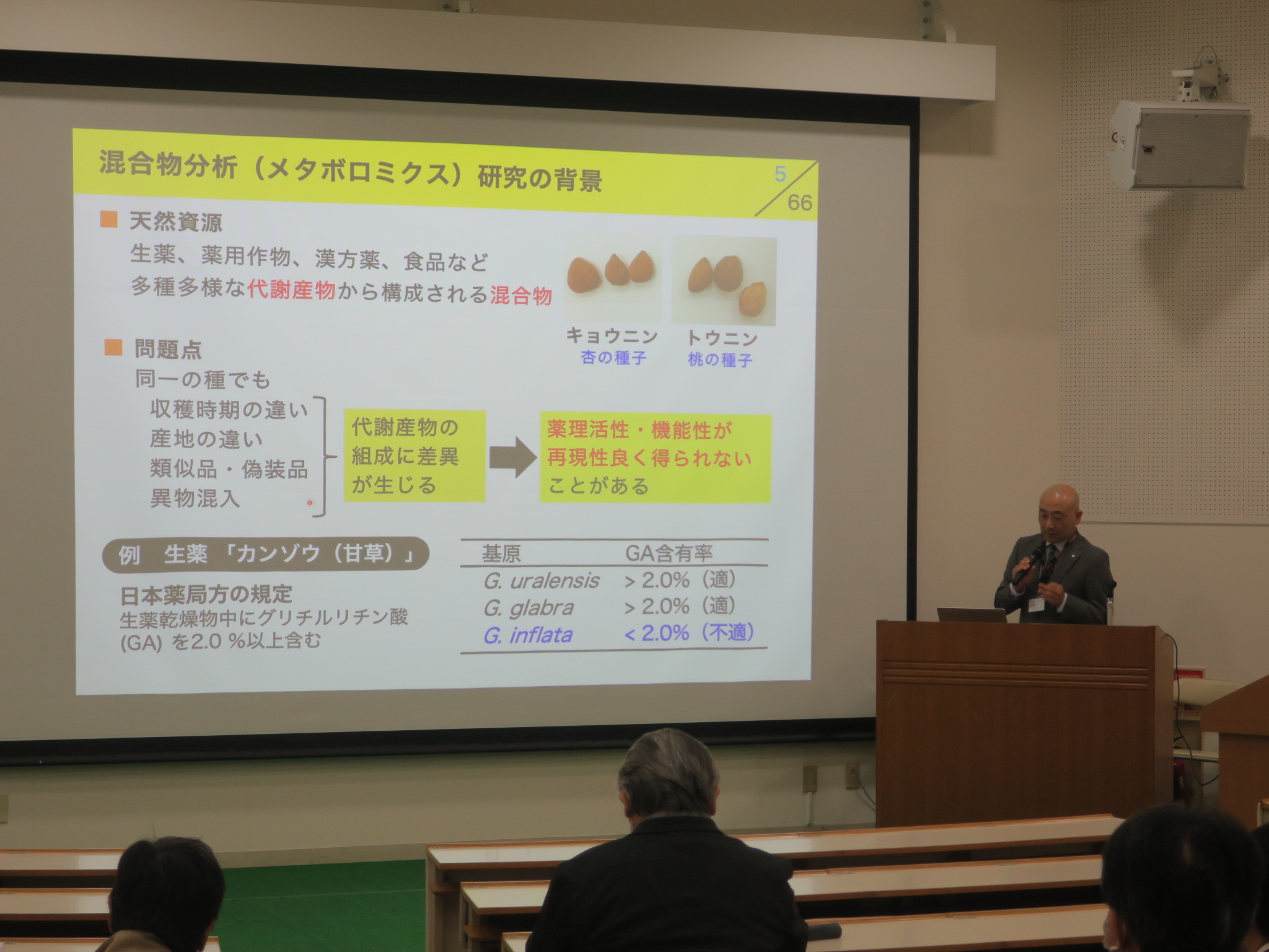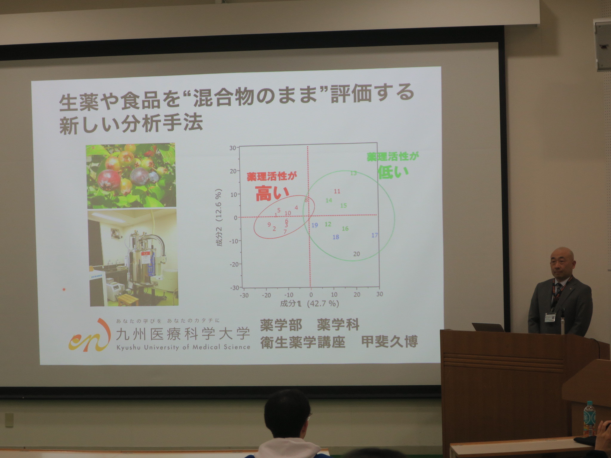 甲斐教授の受賞を記念し、本日16日(月)15時から本学F講義棟にて「生薬や食品を“混合物のまま”評価する新しい分析手法」特別講演会と同時にオンラインでの配信がありました。
