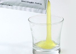 開発に成功したβ-グルカン(下写真:九州医療科学大学ロゴマーク入り)は、免疫増強作用を有するとともに、多様な生理活性作用があることが証明され、最近では未病(ME-BYO)改善に「β-グルカン」の新しい可能性が注目されています。